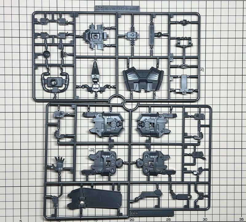 関節っぽいパーツが多め。たぶん外装パーツで見えなくなりそうだけど、モールドが細かい。