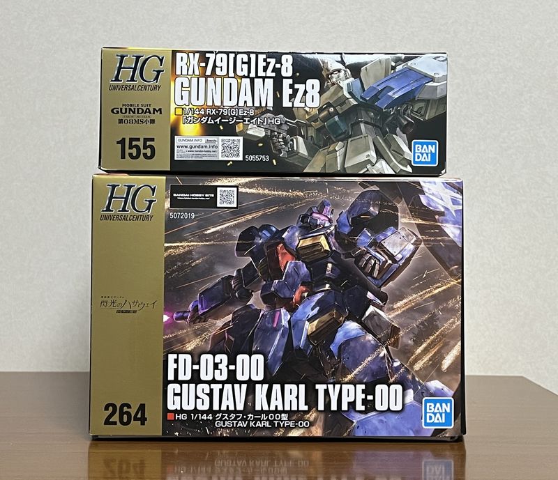 上に乗っているのがEz-8の箱で、HGUCでも最も小さい部類に入るサイズ。