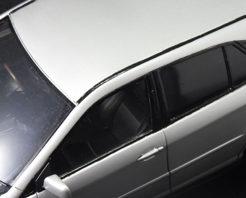 サイドの窓枠部分は筆塗りしたら、塗料の厚みが残ってしまいました。マスキングが面倒だったから・・・