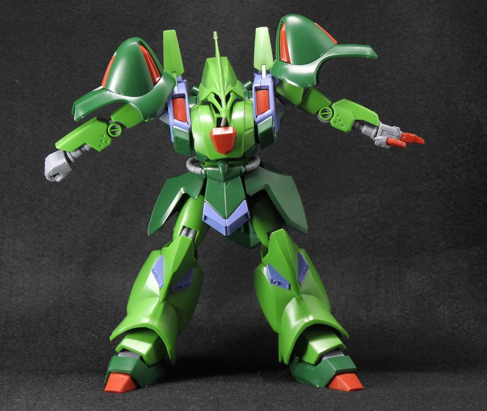 肩パーツが横に広いし、腰部もサイドアーマーがやや大きめで脚部も太め。個人的には好きなフォルムのMSです。