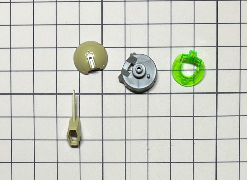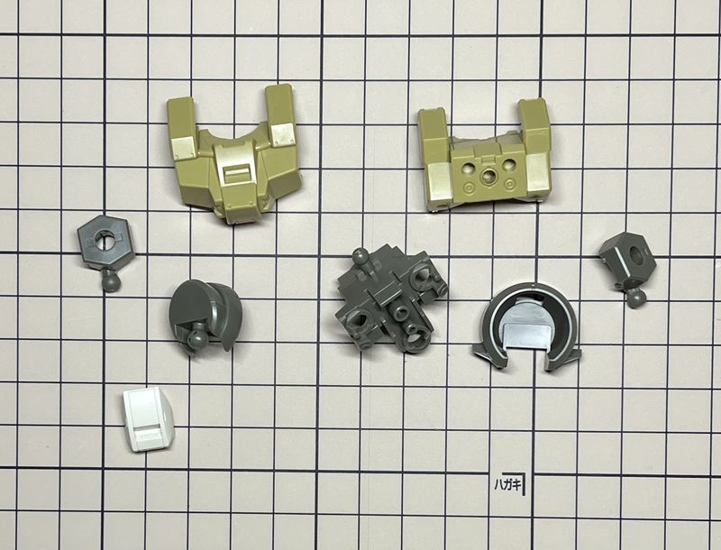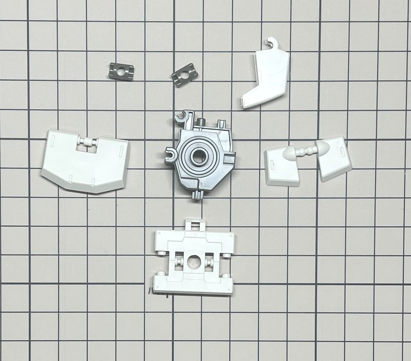 脚部と腰との接続部分のパーツ。説明書だと左足と右足の区別は、このパーツの方向が違うだけになってました。